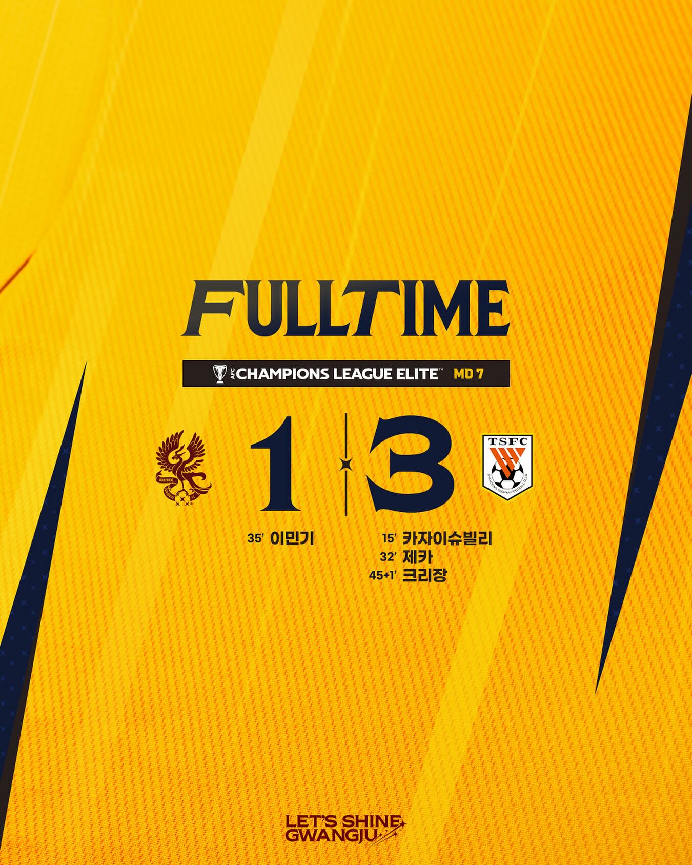 之后光州FC向亞足聯(lián)提起了強(qiáng)烈抗議。