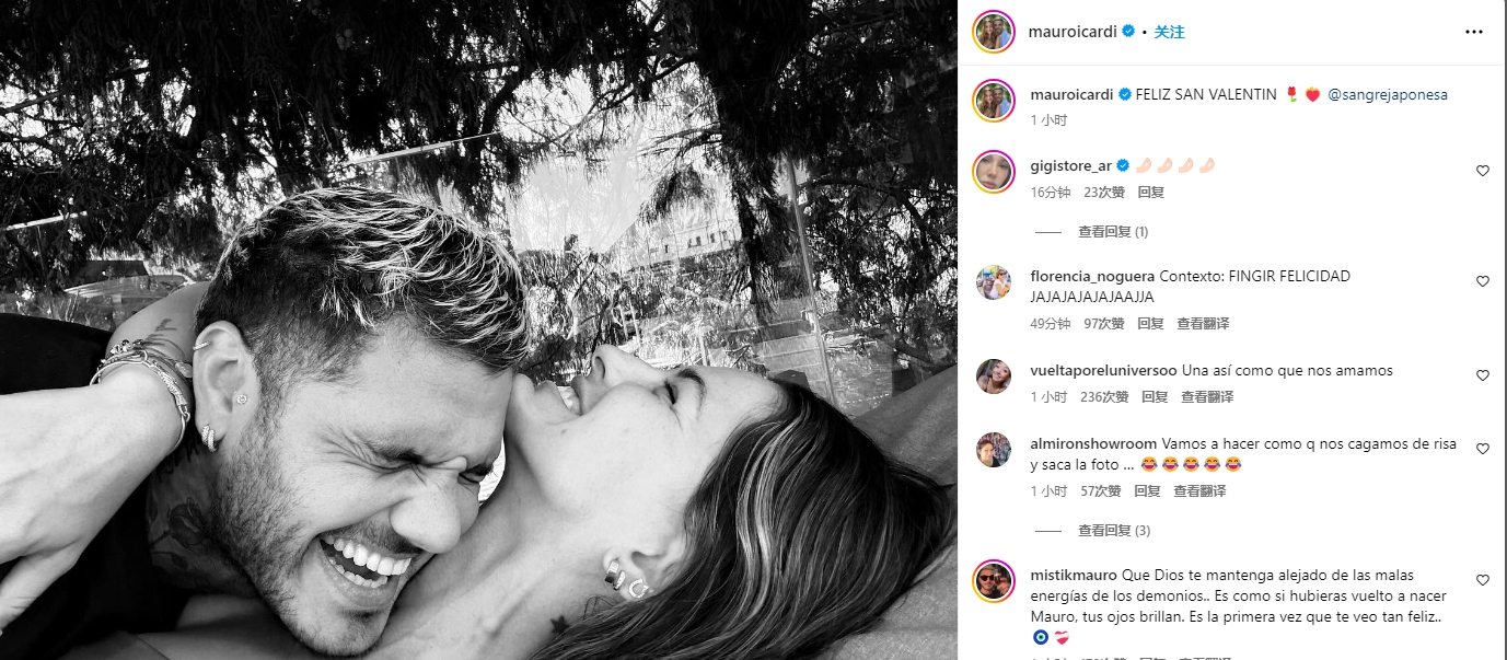 2月15日訊 伊卡爾迪更新社媒動態(tài),曬出與新女友的合照。情人節(jié)之際,伊卡爾迪在社交媒體上曬出與新女友尤金妮婭的親密合照,配文:“情人節(jié)快樂!”伊卡爾迪與旺達(dá)分手之后,很快與新女友尤金妮婭公開戀情,并頻頻在社交媒體上曬出秀恩愛的照片。 本文標(biāo)簽: 足球 五洲