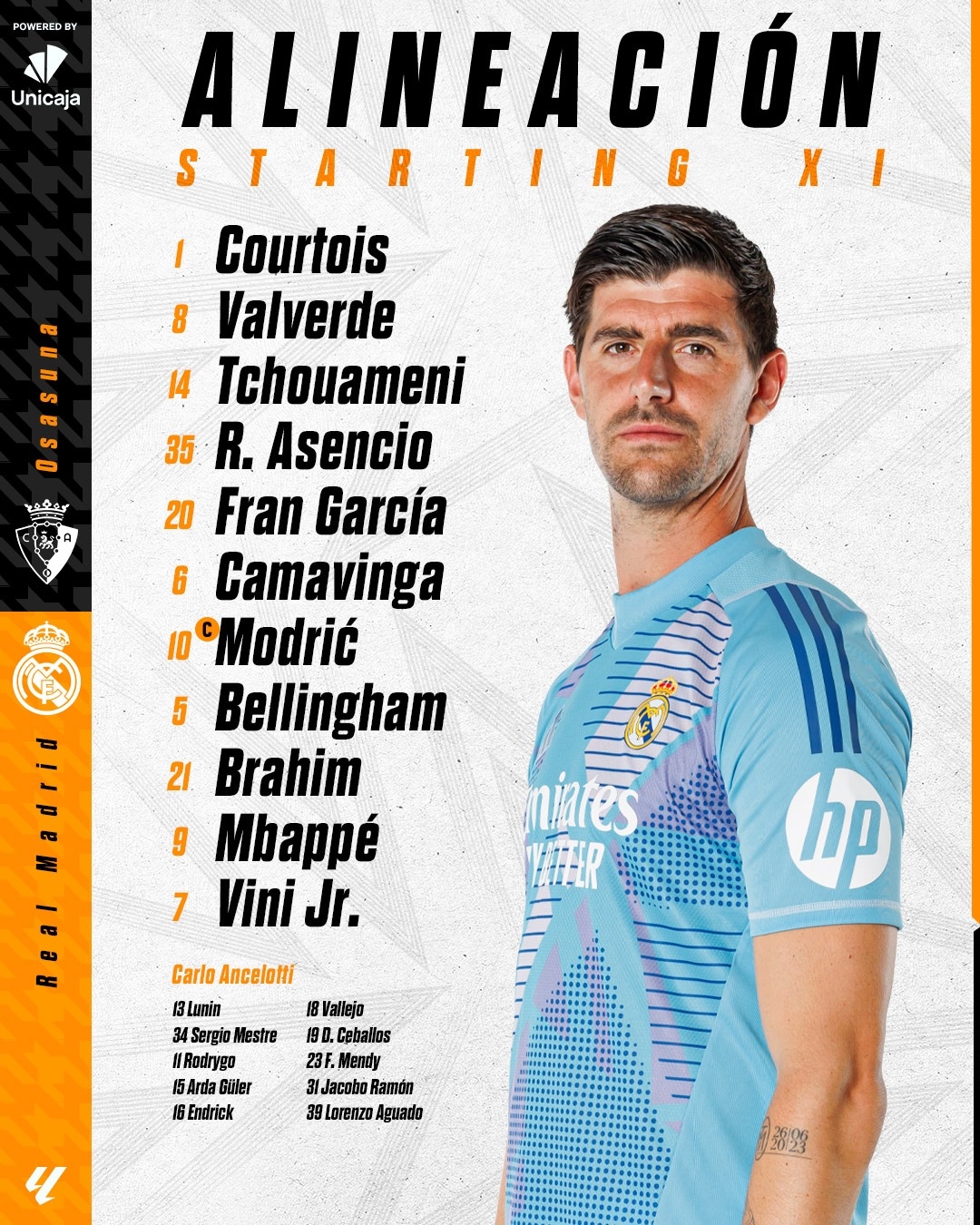 2月15日訊 北京時(shí)間23點(diǎn)15分,西甲第24輪,奧薩蘇納vs皇馬,賽前首發(fā)公布。