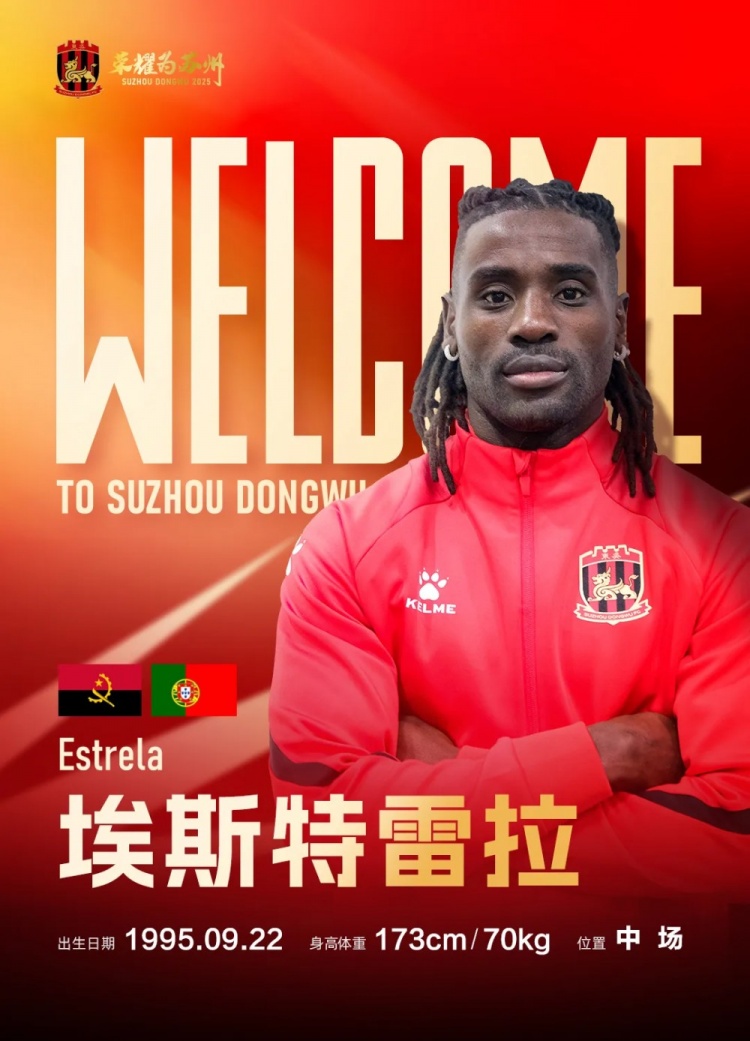 經(jīng)友好協(xié)商并達(dá)成一致,球員埃斯特雷拉正式加盟蘇州東吳足球俱樂(lè)部,為蘇州東吳出戰(zhàn)新賽季各項(xiàng)賽事。