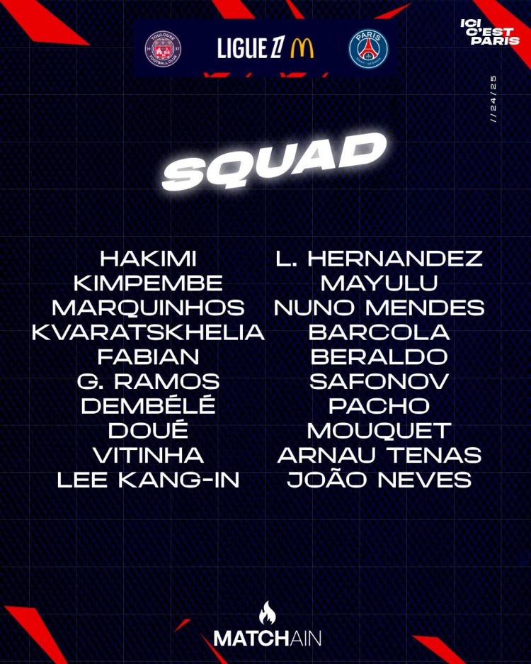 前鋒:克瓦拉茨赫利亞、貢薩洛-拉莫斯、登貝萊、杜埃、巴爾科拉