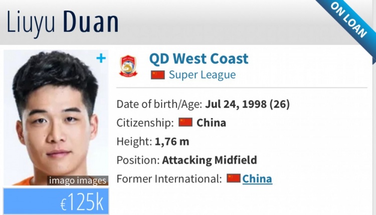 2月15日訊 德轉(zhuǎn)市場今日更新了段劉愚的轉(zhuǎn)會信息,網(wǎng)站顯示球員即將以租借方式再度效力青島西海岸,租借期至今年12月31日。