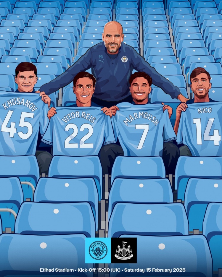 2月15日訊 北京時間今天晚上23點,曼城將在英超第25輪比賽中主場對陣紐卡。曼城官方發(fā)布了為此役制作的海報,主帥瓜迪奧拉帶領(lǐng)胡桑諾夫、雷斯、馬爾穆什、尼科-岡薩雷斯四位新援的漫畫形象出鏡。曼城英超近11次對陣紐卡保持不敗,戰(zhàn)績8勝3平。 本文標(biāo)簽: 足球 英超 曼城