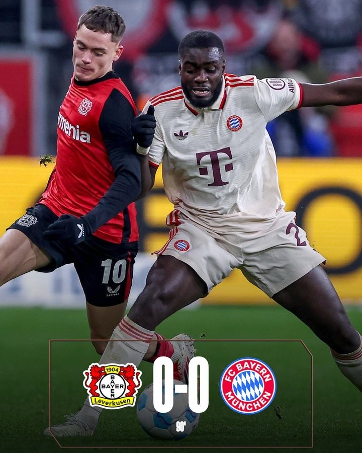 2月16日訊 拜仁在本輪德甲0-0逼平勒沃庫(kù)森,他們直到比賽第73分鐘才首次射門。