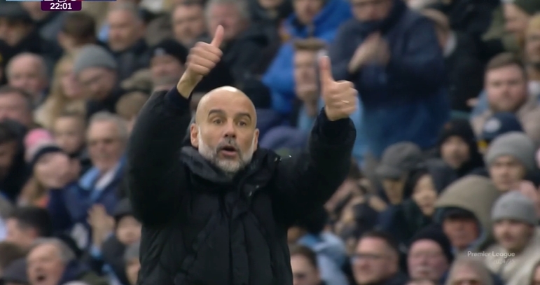 英超第25輪曼城4-0紐卡,比賽第22分鐘胡桑諾夫失誤后回追+解圍,瓜迪奧拉高舉雙手鼓掌點贊。