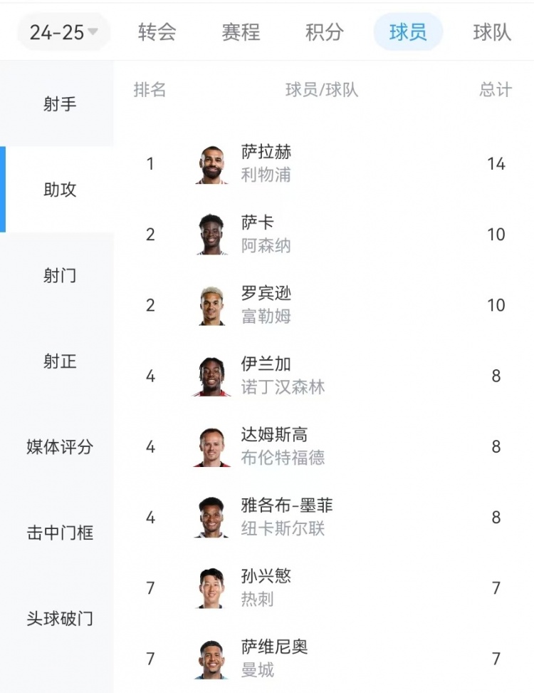 2月17日訊 英超第25輪已經(jīng)完賽,相關(guān)機(jī)構(gòu)也更新了本賽季英超助攻王賠率,薩拉赫斷崖領(lǐng)跑。
