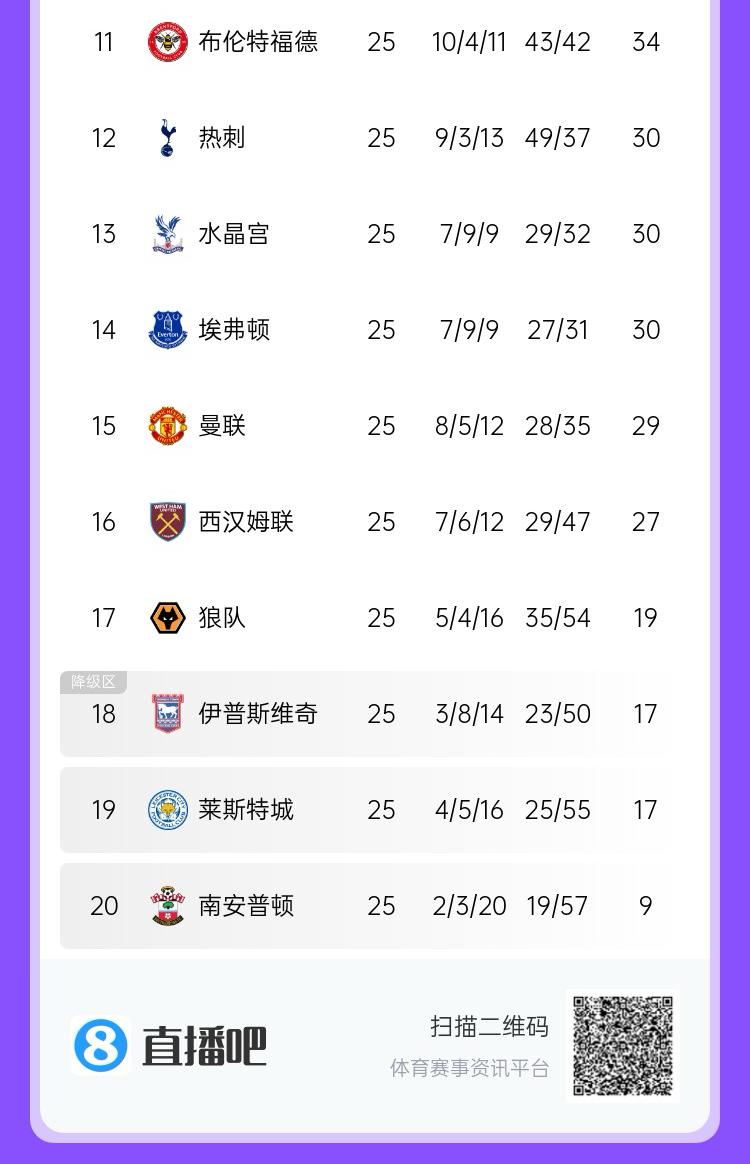 02月17日訊 英超第25輪,曼聯(lián)0-1不敵熱刺。聯(lián)賽前25場(chǎng),曼聯(lián)8勝5平12負(fù),打進(jìn)28球丟了35球,凈勝球已低至-7球。上賽季,曼聯(lián)最終在英超打進(jìn)57球丟58球,以-1凈勝球收官。 本文標(biāo)簽: 足球 英超 曼聯(lián)