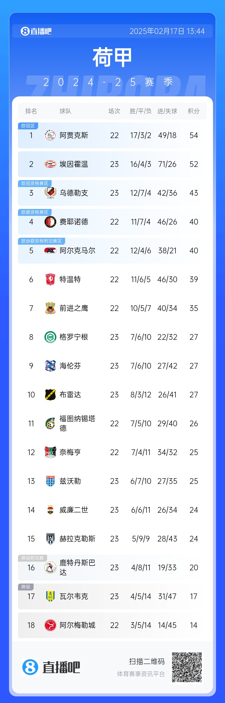 此外,周中這兩家爭(zhēng)冠的荷甲豪門(mén)還都有歐戰(zhàn)任務(wù),不過(guò)阿賈克斯首回合2-0勝圣吉羅斯,埃因霍溫則比較艱難,他們首回合1-2不敵尤文圖斯。