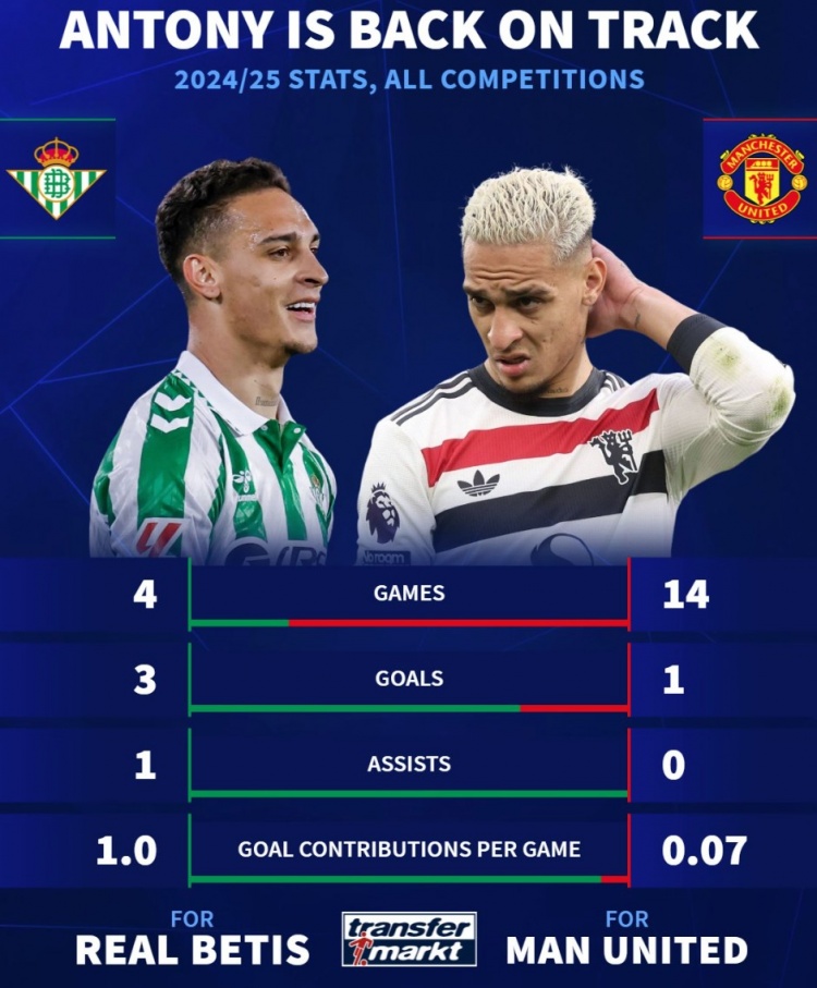 2月18日訊 貝蒂斯在本輪西甲3-0完勝皇社,安東尼1傳1射1造點閃耀全場。數(shù)據(jù)統(tǒng)計顯示,安東尼在冬窗加盟貝蒂斯后4場貢獻3球1助攻,場均直接參與1球。而他本賽季效力曼聯(lián)時各項賽事共計出場14次,僅收獲1球0助攻,場均僅能直接參與0.07球。 本文標簽: 足球 西甲 貝蒂斯 英超 曼聯(lián)