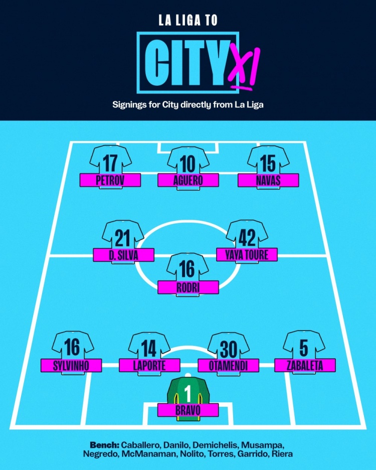 2月18日訊 曼城官方列出了俱樂(lè)部從西甲引進(jìn)球員的最佳陣容。其中,羅德里、阿圭羅、大衛(wèi)-席爾瓦、亞亞-圖雷等人入選。