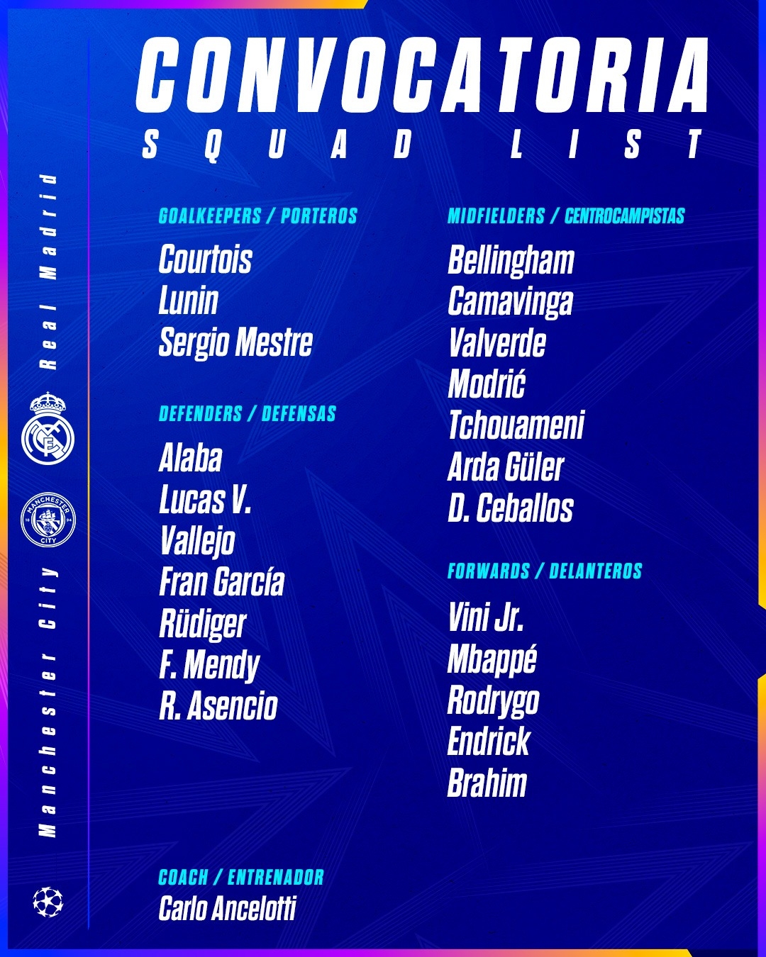 皇馬歐冠名單: