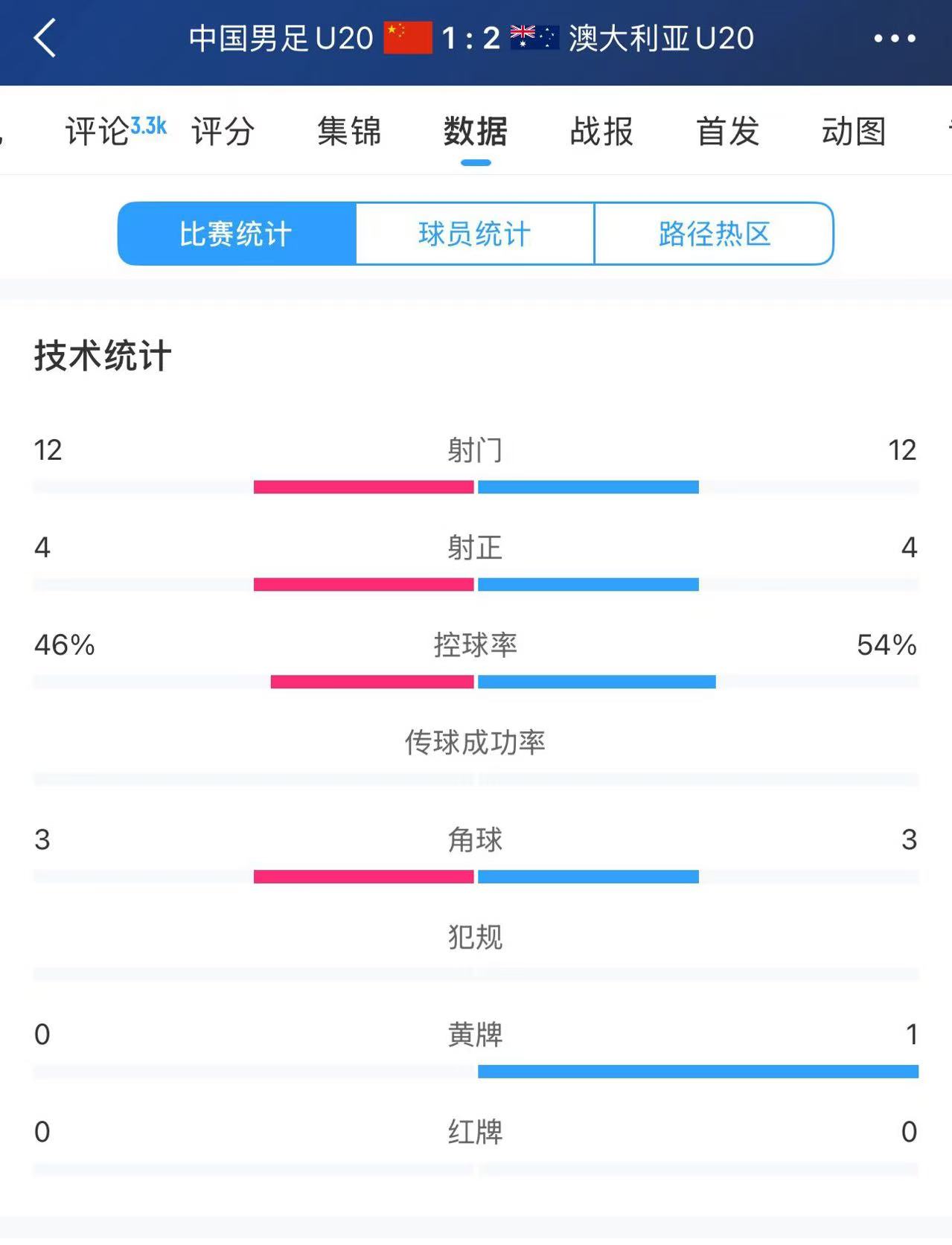 2月18日訊 U20亞洲杯小組賽最后一輪,U20國足1-2不敵澳大利亞,以小組第二名的身份晉級八強。賽后數(shù)據(jù)顯示,U20國足在射門次數(shù)、射正次數(shù)上均與對手持平。在控球率方面,U20國足為46%,澳大利亞U20為54%。射門次數(shù)上,兩隊均有12次射門,均有4次射正。此外,雙方各有3個角球。澳大利亞U20隊吃到了一張黃牌,U20國足沒有黃牌。 本文標簽: 足球 中超 中國足球