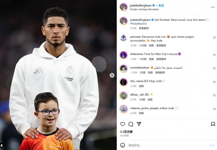 2月20日訊 皇馬在本輪歐冠3-1擊敗曼城,得以挺進歐冠16強戰(zhàn),貝林厄姆首發(fā)踢滿全場。貝林厄姆也在賽后通過社媒曬出自己的比賽照,并配文:“任務完成!晉級下一輪。我愛這支球隊!” 本文標簽: 足球 西甲 皇家馬德里 英超 曼城 歐冠