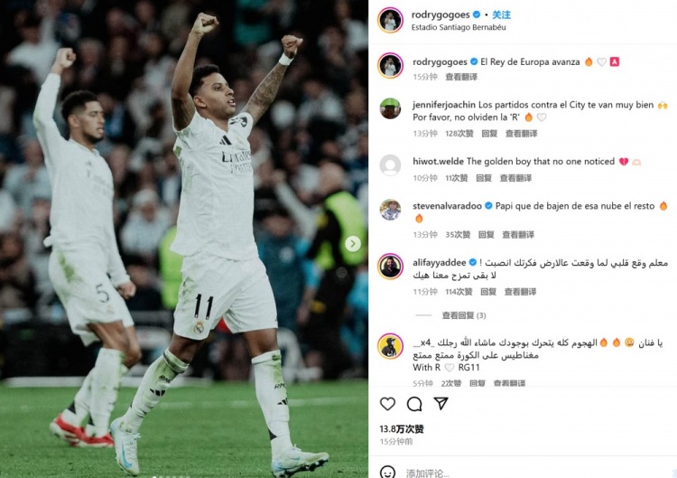 2月20日訊 皇馬在本輪歐冠3-1擊敗曼城,羅德里戈通過社媒曬照紀念晉級。第33分鐘,皇馬打出流暢配合,羅德里戈接球后橫敲,姆巴佩迅速晃倒格瓦迪奧爾,隨后推射近角得手。羅德里戈也在賽后通過社媒曬出自己慶祝的照片,并配文:“歐冠之王邁步向前!????????1次助攻!” 本文標簽: 足球 皇家馬德里 西甲 英超 曼城 歐冠