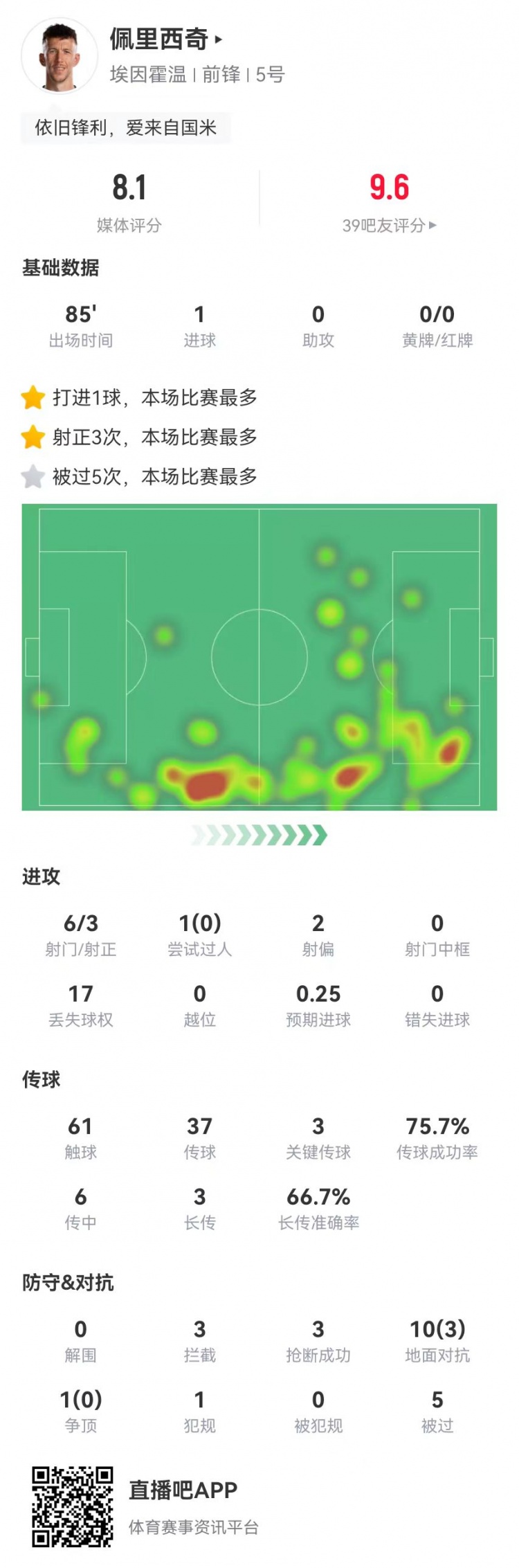 2月20日訊 埃因霍溫在本輪歐冠3-1擊敗尤文,國米舊將佩里西奇本場數(shù)據(jù)如下:首發(fā)出戰(zhàn)85分鐘1球預期進球0.25預期助攻0.2561觸球37傳球、28成功,成功率76%3關(guān)鍵傳球6傳中、0成功3長傳、2成功6射門、3射正1過人、0成功11對抗、3成功17丟失球權(quán)1犯規(guī)3攔截3搶斷5被過獲評8.1分 本文標簽: 足球 意甲 尤文圖斯 國際米蘭 歐冠 荷甲