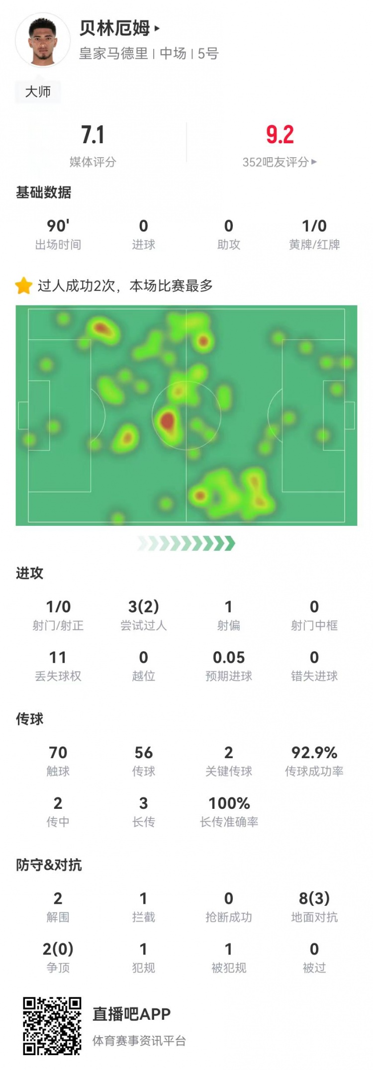 2月20日訊 皇馬在本輪歐冠次回合3-1擊敗曼城,貝林厄姆本場數(shù)據(jù)如下:首發(fā)踢滿全場預(yù)期助攻0.2170觸球56傳球、52成功,成功率93%2關(guān)鍵傳球2傳中、0成功3長傳、3成功1射門、0射正3過人、2成功10對抗、3成功11丟失球權(quán)1犯規(guī)1造犯規(guī)2解圍1攔截獲評7.1分 本文標(biāo)簽: 足球 西甲 皇家馬德里 英超 曼城 歐冠