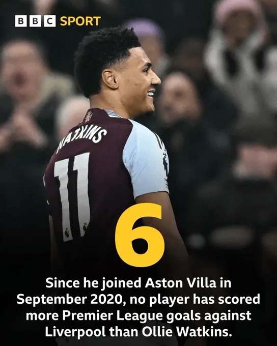 據(jù)BBC的數(shù)據(jù)統(tǒng)計(jì),自2020年9月加盟維拉以來,沃特金斯在英超聯(lián)賽對(duì)陣?yán)锲忠呀?jīng)打進(jìn)6球,同期沒有球員在英超對(duì)陣?yán)锲直人M(jìn)球更多。