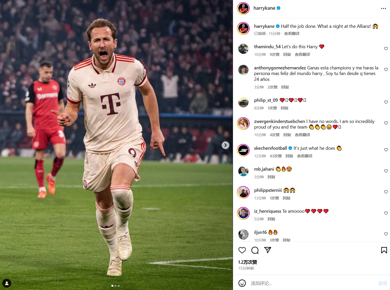 3月6日訊 在本輪歐冠,拜仁3-0大勝勒沃庫森。本場比賽凱恩梅開二度,賽后他也在個人社媒曬出本場慶祝照片,配文寫道:“完成一半的工作,安聯(lián)球場的美妙之夜!” 本文標(biāo)簽: 足球 德甲 拜仁慕尼黑