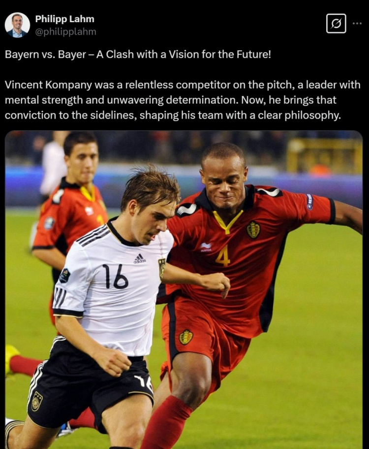 拉姆寫道:拜仁對陣勒沃庫森,這是一場未來愿景之間的較量!在球場上,孔帕尼是一位不屈不撓的斗士,一位擁有強大精神力量和堅定決心的領(lǐng)袖?,F(xiàn)在,他將這種信念帶到了教練席,正在用清晰的理念塑造他的球隊。