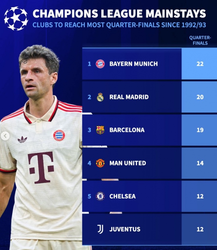 3月6日訊 歐冠十六強戰(zhàn)首回合已經全部完賽,《轉會市場》也統(tǒng)計了92-93賽季改制之后的晉級歐冠八強次數情況,拜仁以22次居首。改制后晉級歐冠八強次數榜:1.拜仁,22次2.皇馬,20次3.巴薩,19次4.曼聯,14次5.切爾西,12次5.尤文,12次 本文標簽: 足球 歐冠 英超 西甲 意甲 德甲 曼聯 切爾西 皇家馬德里 巴塞羅那 尤文圖斯 拜仁慕尼黑