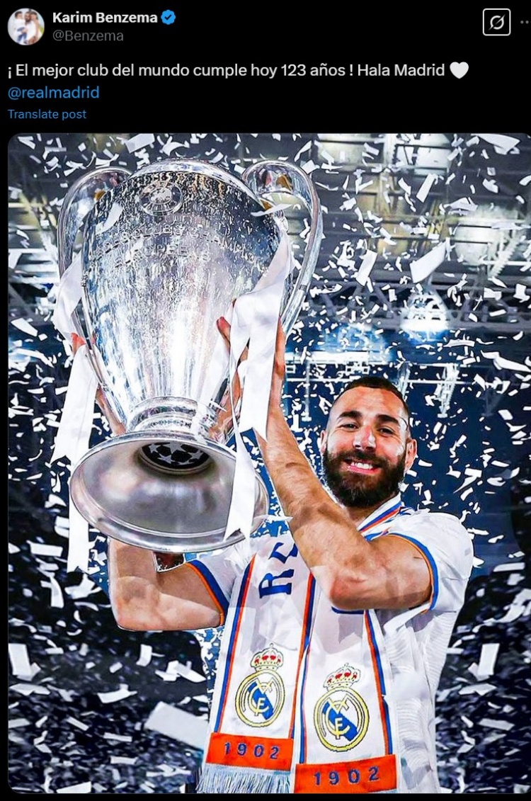 3月6日訊 今天是皇馬俱樂(lè)部成立123周年紀(jì)念日,前皇馬前鋒本澤馬也在個(gè)人社媒曬出昔日身披球隊(duì)?wèi)?zhàn)袍捧杯照。本澤馬在社媒配文寫(xiě)道:“世界最佳俱樂(lè)部在今天迎來(lái)成立123周年紀(jì)念日,Hala Madrid!” 本文標(biāo)簽: 足球 西甲 皇家馬德里