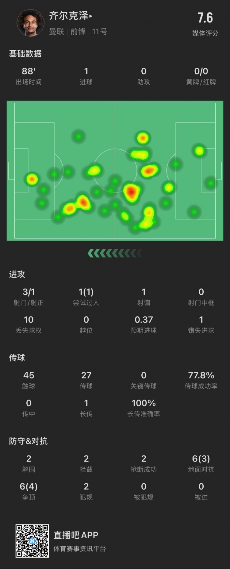 3月7日訊 歐聯(lián)杯1/8決賽首回合,曼聯(lián)客戰(zhàn)皇家社會的比賽正在進(jìn)行。第88分鐘,齊爾克澤被換下場。此役,他打進(jìn)一球,獲評7.6分。