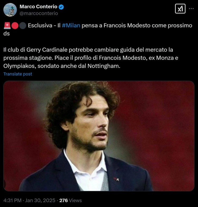 1月30日訊 據(jù)意大利記者Marco Conterio獨家消息,米蘭在考慮聘請前蒙扎、諾丁漢森林總監(jiān)莫德斯托出任俱樂部的新體育總監(jiān)。記者表示,米蘭可能會在下賽季更換轉(zhuǎn)會部門的管理層,莫德斯托的履歷十分出色。莫德斯托是法國人,球員時代曾為摩納哥等隊效力。退役后他走上了管理崗位,曾擔任諾丁漢森林和蒙扎的技術(shù)總監(jiān)。 本文標簽: 足球 意甲 AC米蘭