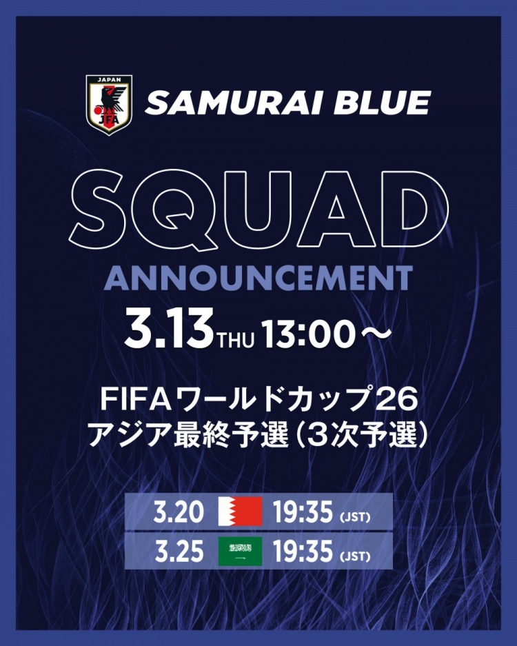 3月7日訊 根據(jù)日本國(guó)家隊(duì)官方的消息,日本隊(duì)3月份世預(yù)賽名單將在3月13日公布。