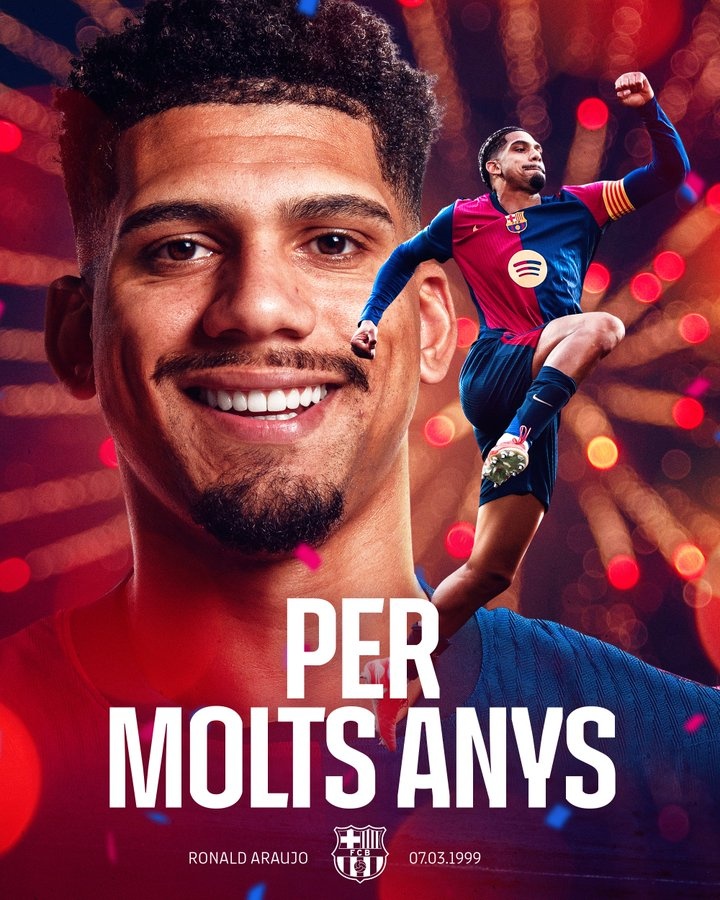 3月7日訊 今天是巴薩后衛(wèi)羅納德-阿勞霍的26歲生日,俱樂部官推發(fā)文為他送上祝福。阿勞霍在1999年3月7日出生于烏拉圭里埃維拉,他在2018年加入巴薩B隊,2020年進(jìn)入一線隊,至今他已經(jīng)為巴薩一線隊出場160次,貢獻(xiàn)10球7助。巴薩官推曬出了他的海報,并配文:“生日快樂,羅納德!” 本文標(biāo)簽: 足球 西甲 巴塞羅那
