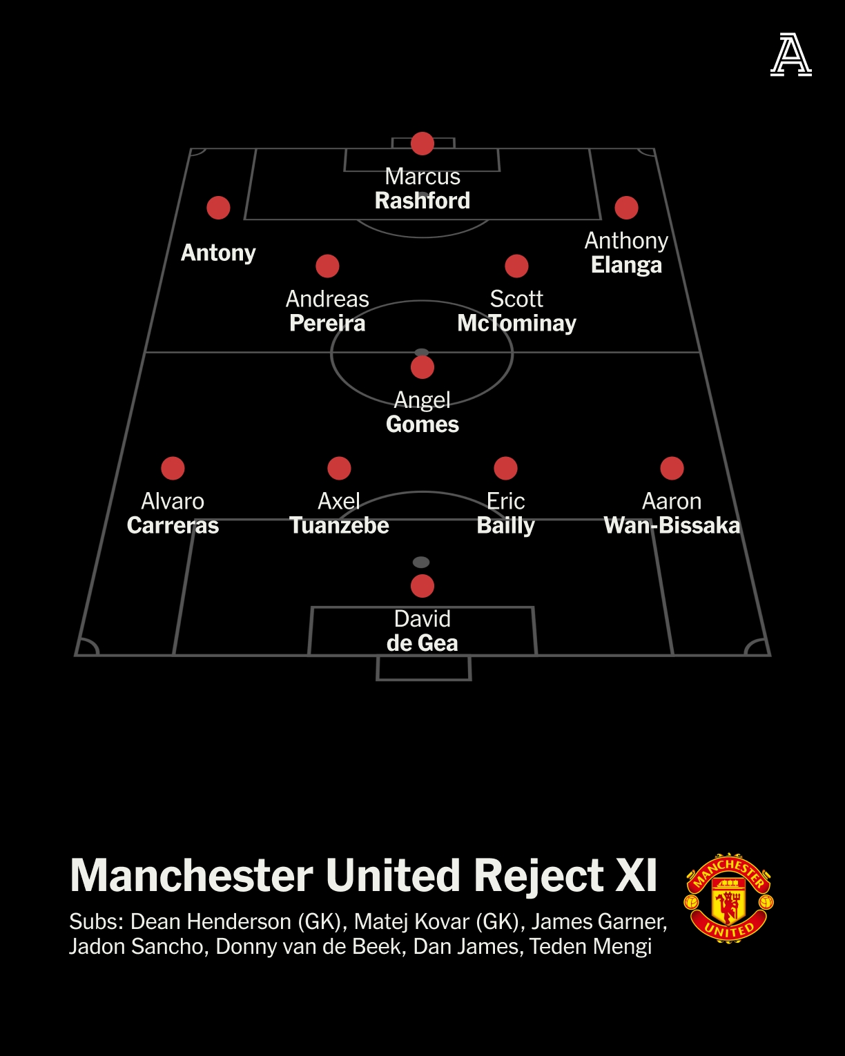 曼聯(lián)棄將隊(duì)替補(bǔ):迪恩-亨德森、科瓦爾、加納、桑喬、范德貝克、丹尼爾-詹姆斯、泰登-門吉