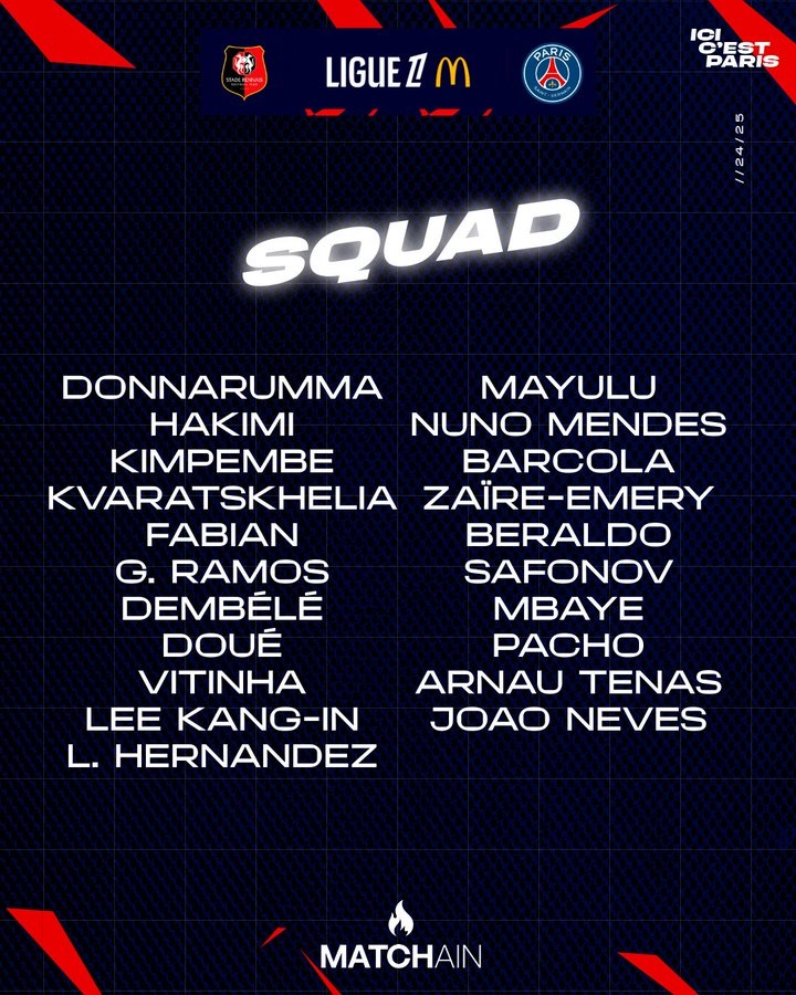 3月8日訊 北京時(shí)間明天凌晨0點(diǎn),巴黎圣日耳曼將在法甲第25輪客場(chǎng)挑戰(zhàn)雷恩,球隊(duì)今天公布了大名單。