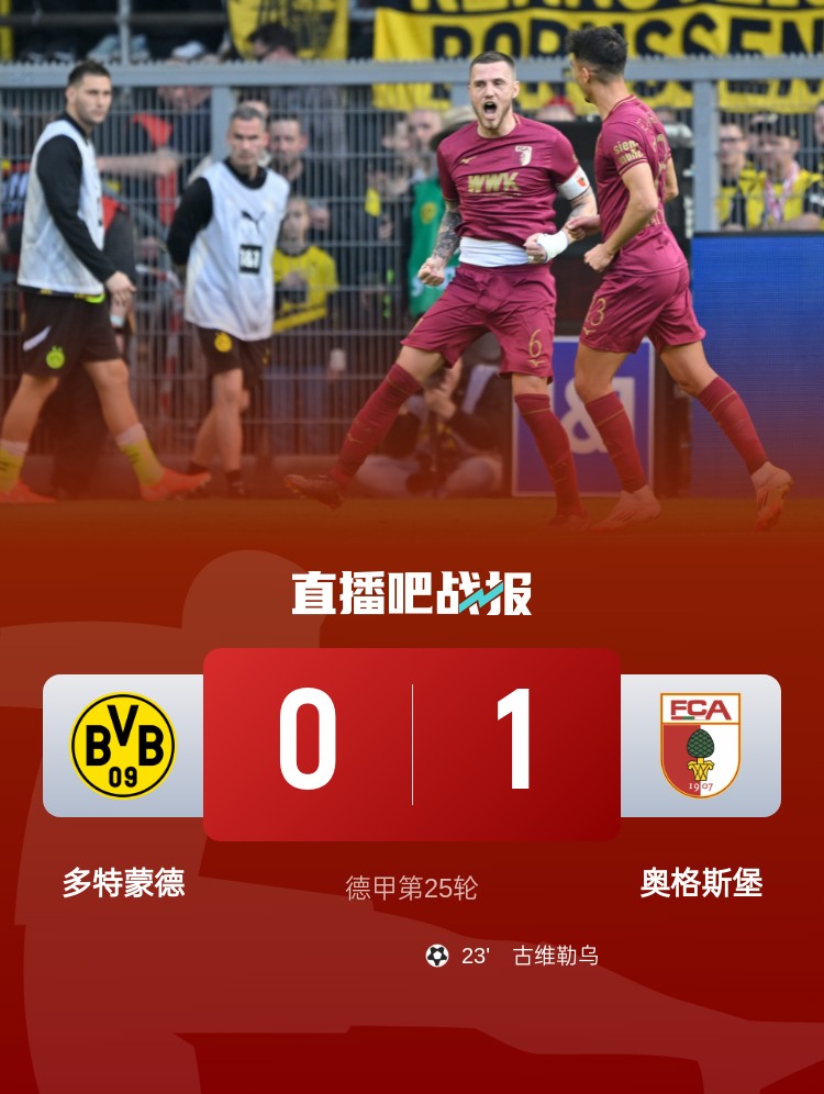 德甲第25輪,多特主場0-1不敵奧格斯堡。上半場,古維勒烏頭球吊射破門;下半場,布蘭特破門但越位在先,厄茲詹自擺烏龍但古維勒烏越位在先,埃森德破門但亞基奇越位。