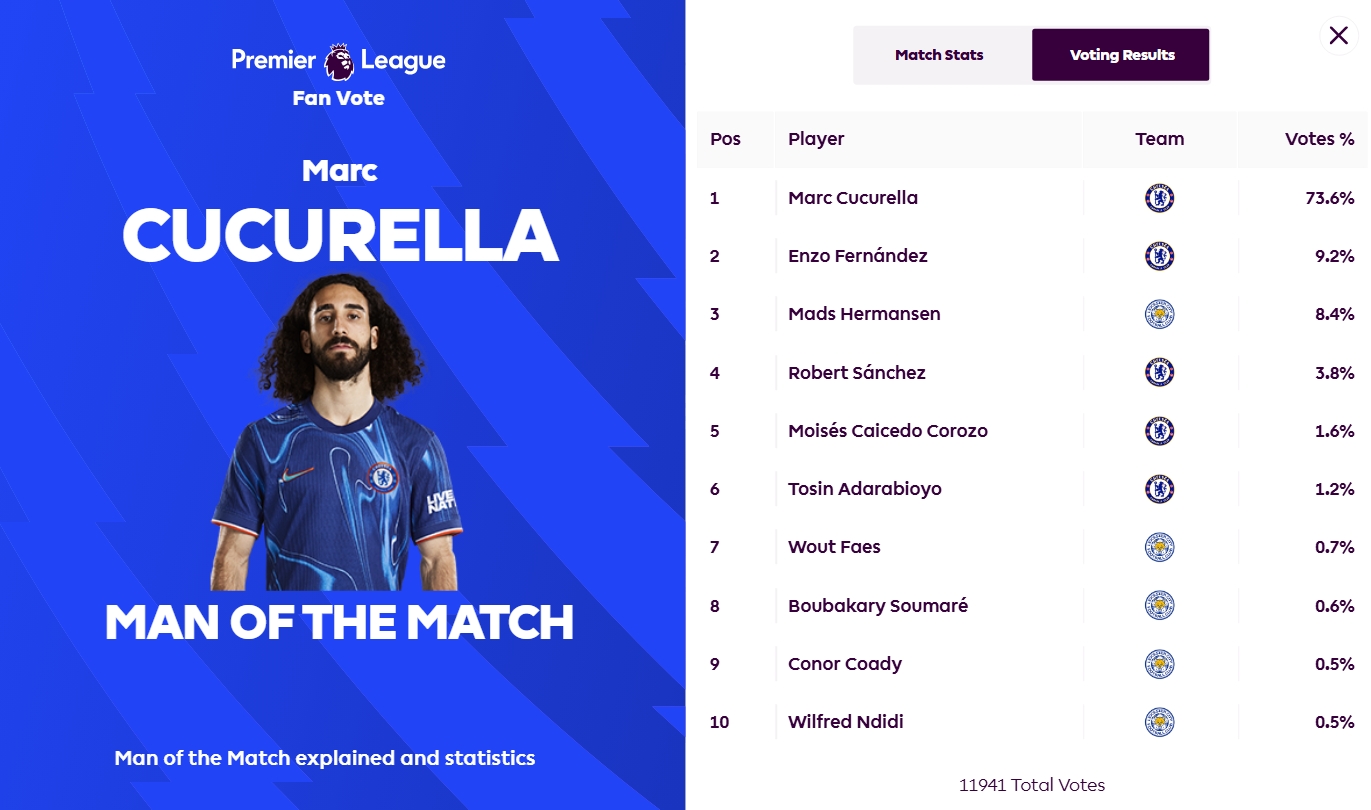 3月10日訊 英超第28輪,切爾西1-0萊斯特城。庫庫雷利亞首發(fā)出戰(zhàn),賽后以73.6%得票率當選全場最佳。本場比賽,庫庫雷利亞打進制勝進球,3次地面對抗2次成功,還有6次解圍,1次攔截和1次搶斷。 本文標簽: 足球 英超 切爾西