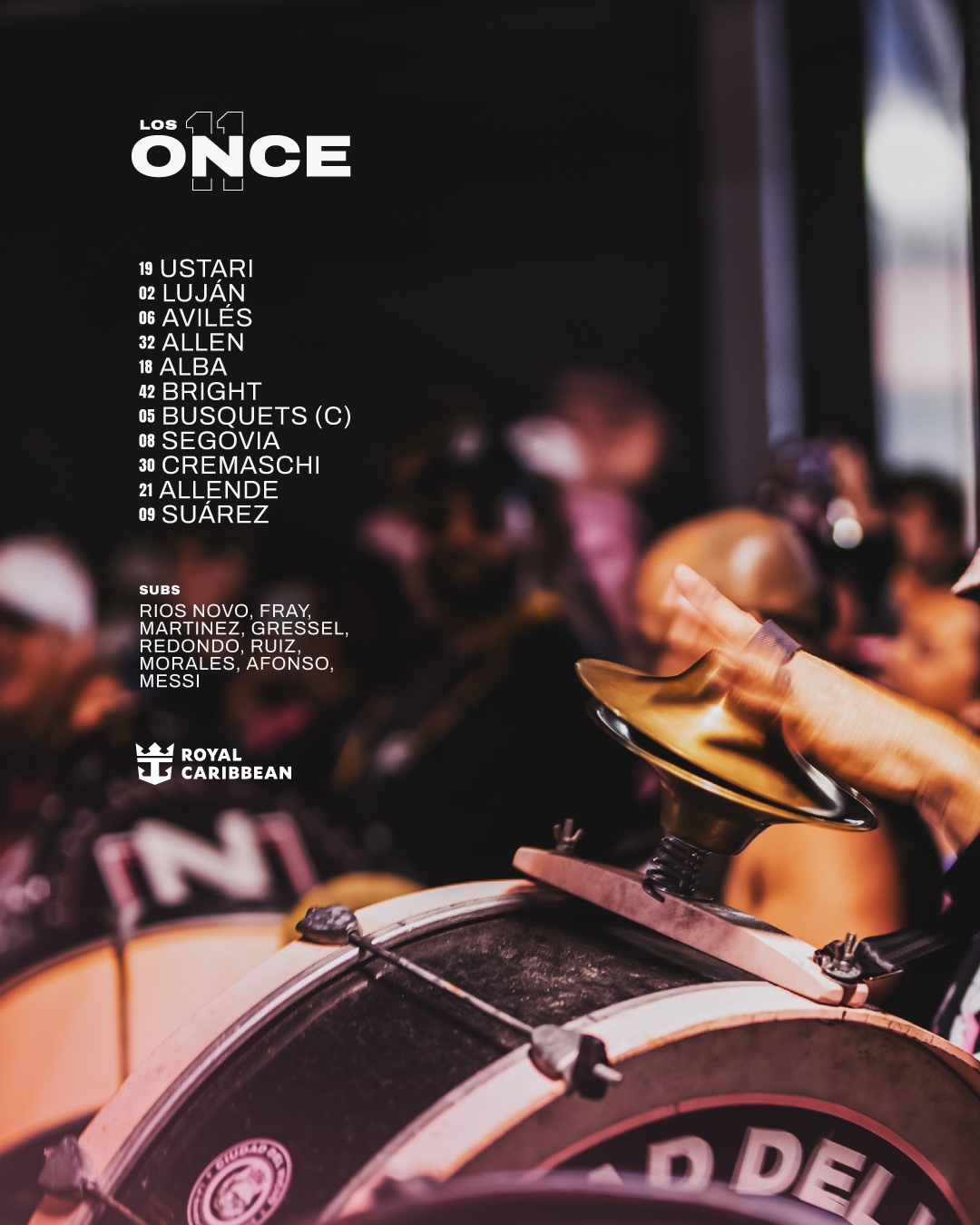 邁阿密?chē)?guó)際首發(fā):19-烏斯塔里、2-盧揚(yáng)、6-阿維萊斯、32-阿倫、18-阿爾巴、42-楊尼克-布萊特、5-布斯克茨、8-特拉斯科、30-克雷馬斯基、21-阿連德、9-蘇亞雷斯