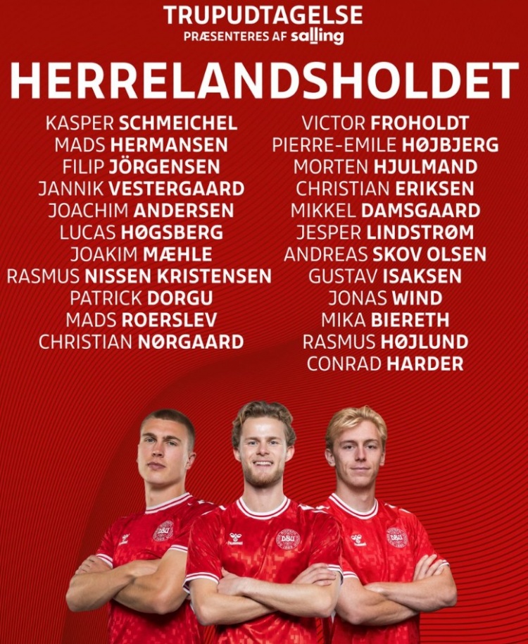 3月11日訊 今天,丹麥足協(xié)在官方社媒公布了新一期國(guó)家隊(duì)球員名單,霍伊倫領(lǐng)銜,小舒梅切爾、埃里克森在列