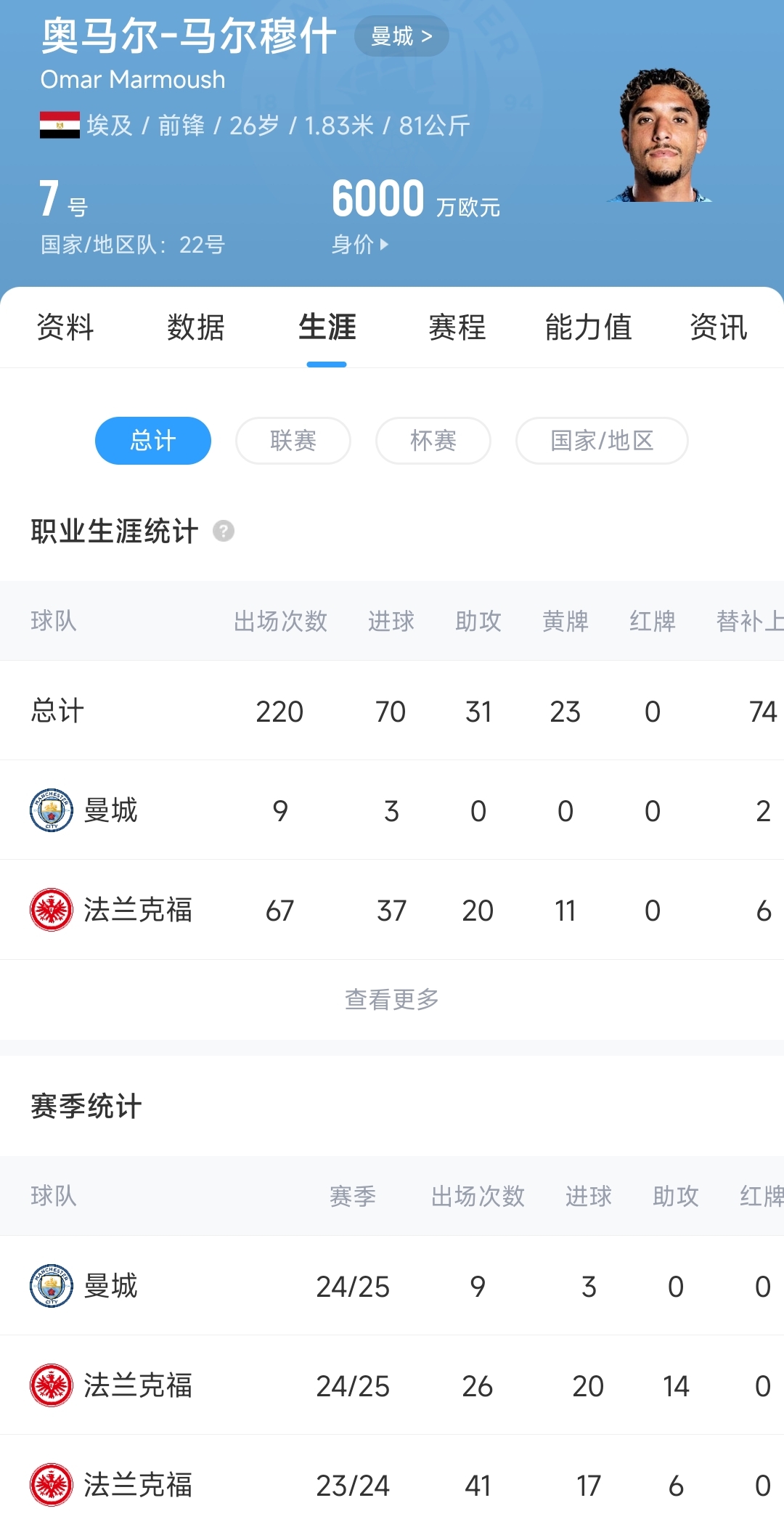 馬爾穆什加盟曼城后數(shù)據(jù):9場3球0助