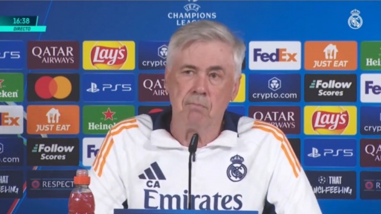 3月12日訊 北京時間3月13日4:00,皇馬將在歐冠1/8決賽次回合客場挑戰(zhàn)馬德里競技。首回合皇家馬德里主場2-1占得先機。賽前,皇馬主帥安切洛蒂出席新聞發(fā)布會。