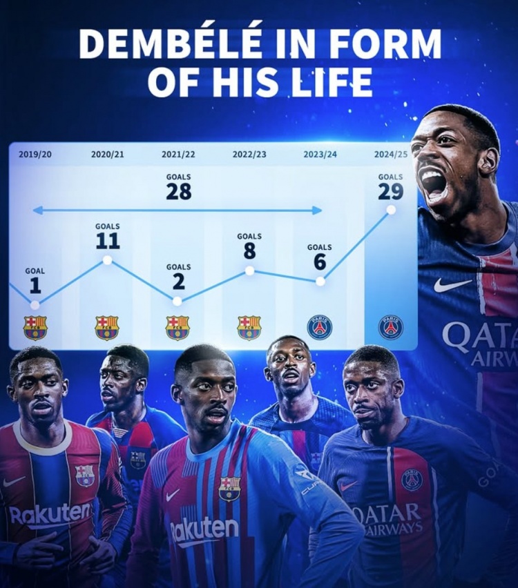 德轉(zhuǎn)數(shù)據(jù)統(tǒng)計顯示,登貝萊本賽季已經(jīng)打進(jìn)29球,而他此前5個賽季在俱樂部的總進(jìn)球數(shù)也才28球。