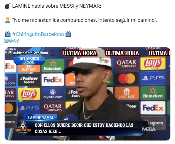 3月12日訊 歐冠1/8決賽次回合,巴薩3-1戰(zhàn)勝本菲卡,總比分4-1晉級。賽后在接受采訪時(shí),亞馬爾被問到自己和梅西、內(nèi)馬爾的對比一事。