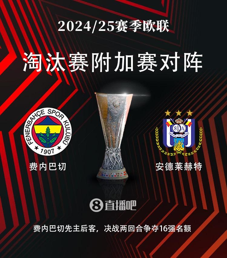 01月31日訊 024/25賽季歐聯(lián)淘汰賽階段附加賽抽簽結(jié)果今日出爐,費(fèi)內(nèi)巴切vs安德萊赫特,費(fèi)內(nèi)巴切先主后客爭(zhēng)奪16強(qiáng)名額。