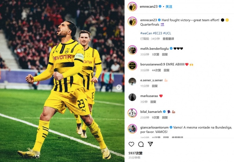 3月13日訊 多特在本輪歐冠2-1擊敗里爾,埃姆雷-詹點射為球隊扳平比分。第54分鐘,吉拉西造點,埃姆雷-詹主罰點球,騙過門將打中路得手。埃姆雷-詹也在賽后通過社媒曬出了自己的怒吼慶祝照,并配文:“全隊努力鏖戰(zhàn)贏下勝利??????歐冠八強戰(zhàn)????”根據(jù)賽程,多特將在4月上旬和巴薩在歐冠八強戰(zhàn)迎來兩回合對抗。 本文標(biāo)簽: 足球 德甲 多特蒙德 西甲 巴塞羅那 法甲 里爾 歐冠