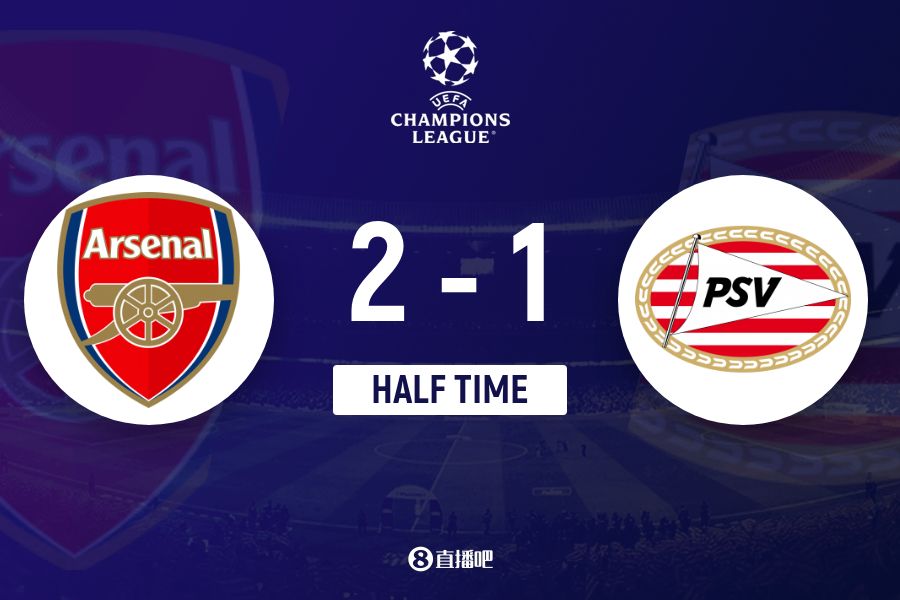 上半場傷停補時1分鐘,半場結束,阿森納暫2-1埃因霍溫。