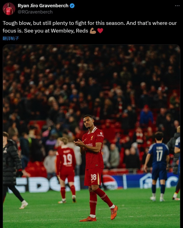 赫拉芬貝赫曬出自己的比賽照,并表示:“沉重的打擊,但本賽季仍然有很多值得我們奮戰(zhàn)。我們也將專注于此。溫布利再見,紅軍球迷們!”