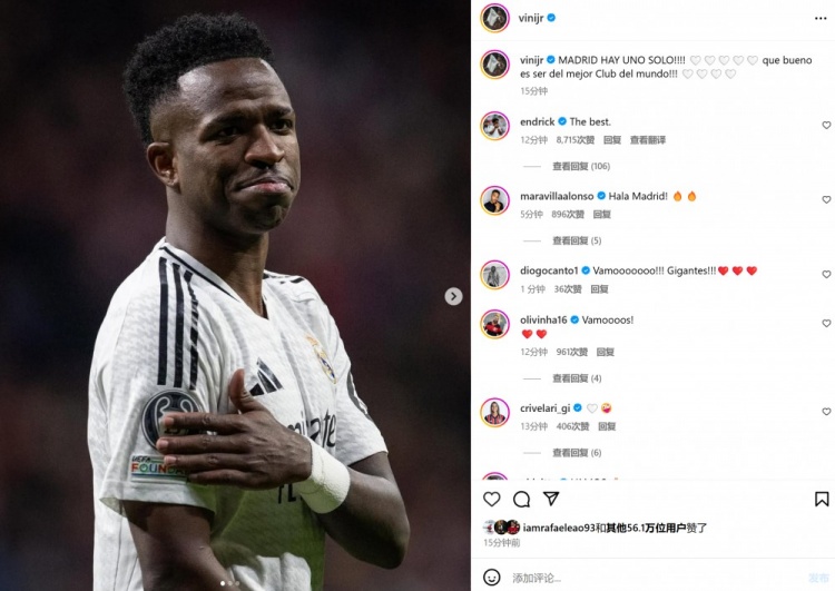 3月13日訊 在本輪歐冠,皇馬點(diǎn)球大戰(zhàn)擊敗馬競晉級(jí)。本場比賽維尼修斯罰丟一粒點(diǎn)球,賽后他在社媒曬照慶祝勝利,配文寫道:“馬德里只有唯一,能成為世界最佳俱樂部的一員是多棒的事情!” 本文標(biāo)簽: 足球 西甲 皇家馬德里