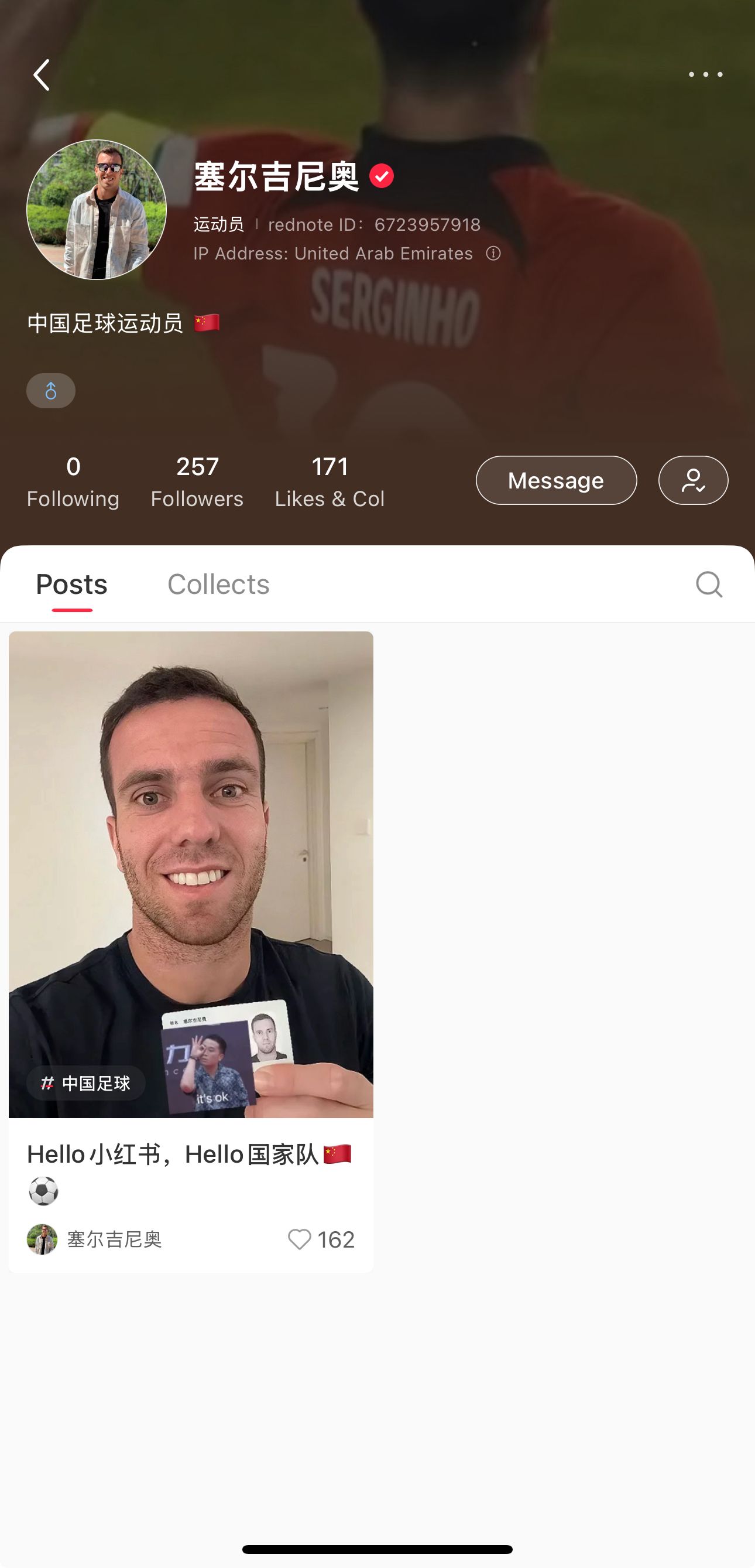 03月13日訊 塞爾吉尼奧在社交媒體曬出了個(gè)人身份證,配文我是中國(guó)足球運(yùn)動(dòng)員塞爾吉尼奧!IP地址顯示塞爾吉尼奧已經(jīng)抵達(dá)阿聯(lián)酋。