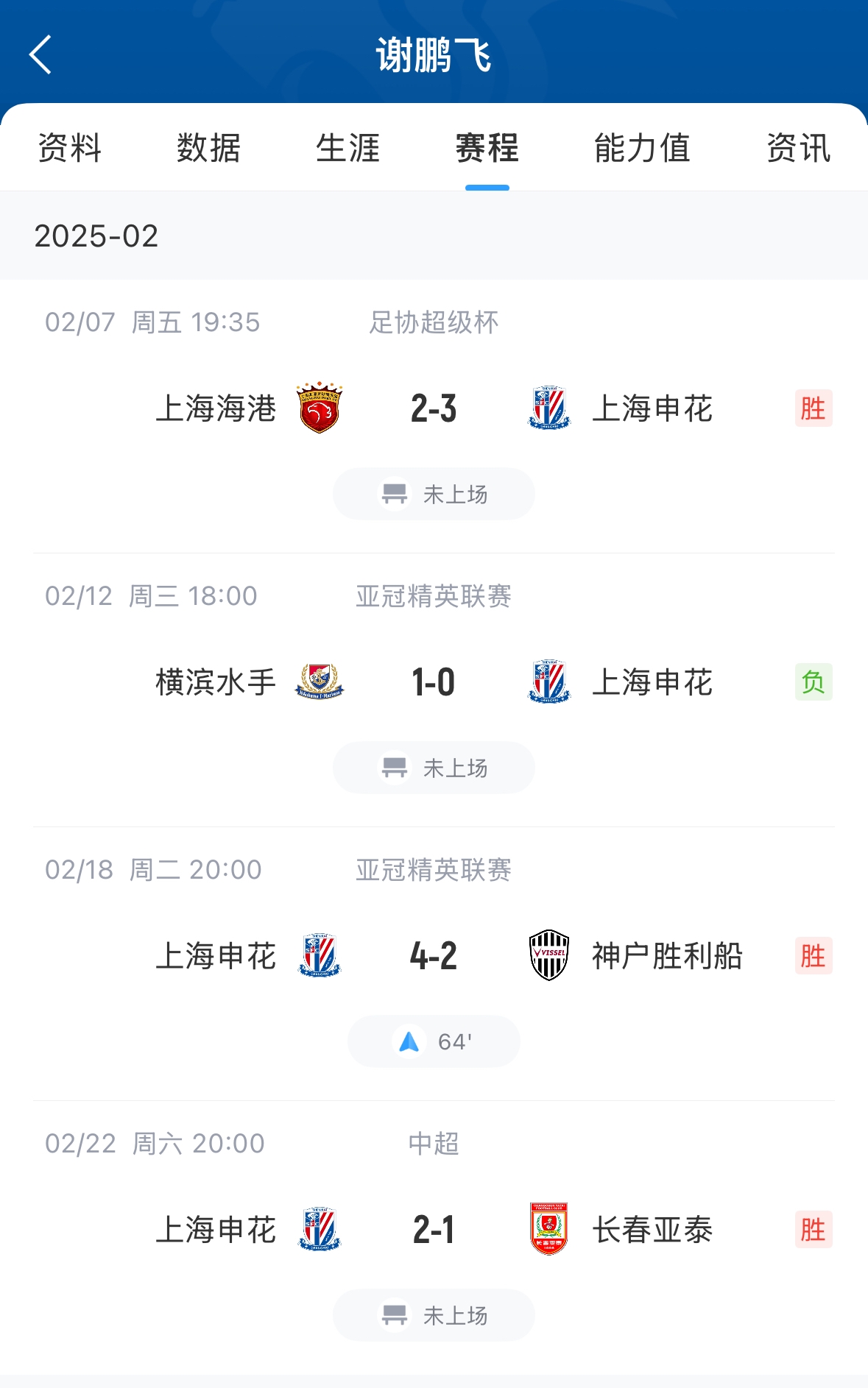 03月13日訊 昨日亞冠,申花不敵川崎前鋒無緣晉級。謝鵬飛本場比賽替補未出場,謝鵬飛今年6月底滿32歲,本賽季目前代表申花只出場1次出場時間26分鐘,其余幾場比賽均未出場。據(jù)德轉(zhuǎn)數(shù)據(jù)統(tǒng)計,上賽季謝鵬飛代表申花出場35次,打進4球送出7次助攻。 本文標簽: 足球 中超 中國足球 上海申花