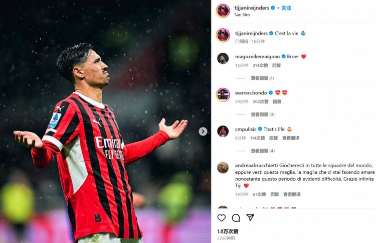3月16日訊 米蘭在本輪意甲逆轉科莫,賴因德斯傳射建功堪稱最大功臣。第53分鐘,AC米蘭左路攻勢,賴因德斯挑傳,普利西奇禁區(qū)內左側得球,非常小的角度左腳抽射破門。第75分鐘,亞伯拉罕背轉身送出直塞,賴因德斯得球殺入禁區(qū),單刀推射近角破門。賴因德斯也在賽后通過社媒曬出自己的“無奈攤手”慶祝照,并用法語經典口頭禪配文:“這就是生活?????????♂?”。邁尼昂、邦多、普利西奇等多位隊友也現身評論區(qū)互動。 本文標簽: 足球 意甲 AC米蘭 科莫