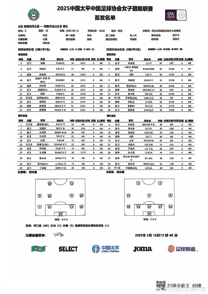 北京時(shí)間3月16日15:00,2025中國太平中國足球協(xié)會(huì)女子超級聯(lián)賽第三輪,河南萬仙山女足客場對陣陜西志丹女足。