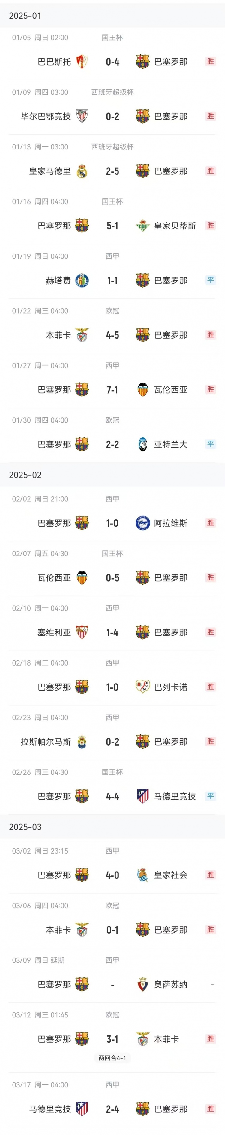 數(shù)據(jù)統(tǒng)計(jì)顯示,自去年年底2連敗之后,巴薩進(jìn)入2025年后各項(xiàng)賽事18場(chǎng)不敗。