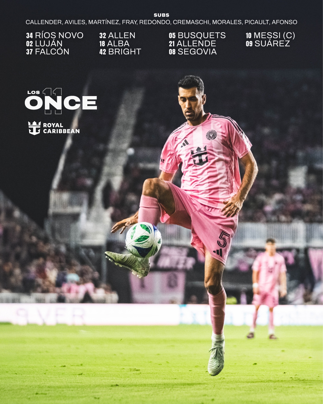 邁阿密國(guó)際首發(fā):34-羅科-里奧斯、2-盧揚(yáng)、37-法爾肯、32-阿倫、18-阿爾巴、42-楊尼克-布萊特、5-布斯克茨、21-阿連德、8-特拉斯科、10-梅西、9-蘇亞雷斯